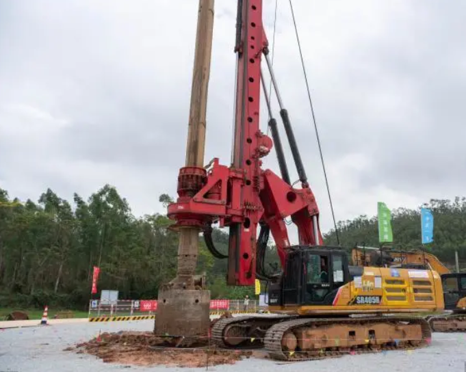 首桩长25米、桩径1.6米。施工现场可以看到,旋挖钻机高效运转,其最大钻孔直径达2.5米,深度可达106米,凭借大功率动力系统与精准控制系统,可实现高效率、高质量、低扰动作业。